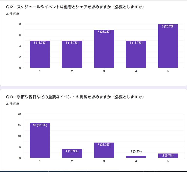 - 基本機能以外にも,月単位のカレンダー使用率に対する需要が最も高かった。カレンダーを開けて毎月何日くらいやるべきかを直接知ることができる傾向が高い