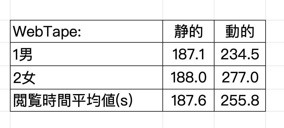 本実験では、静的Webページと動的Webページのユーザーの閲覧時間、アイトラッキング、マウスの軌跡をテストすることで比較実験を行い、ユーザーの満足度調査、ユーザーエラーの分析、ユーザー好みのテストなどを完成させる、そして、ユーザーの閲覧体験とニーズを理解した上で、Webページ制作の最適化と改善のための総合的なソリューションを提供する。この研究は、関連する開発者のための良い技術的な参考になれるほか、Webページのデザインの改善に示唆を与えることを期待している。