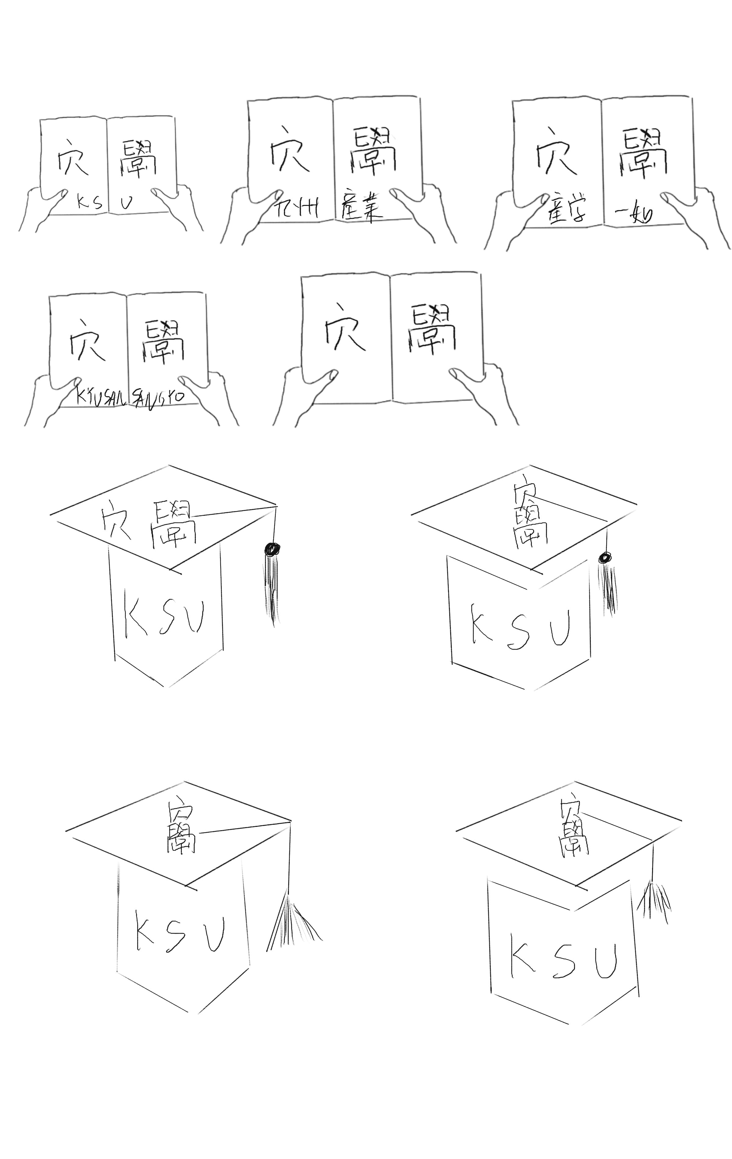 - 手を開けて、コミニケーションマークが上(総合大学、社会に人材を送る)
