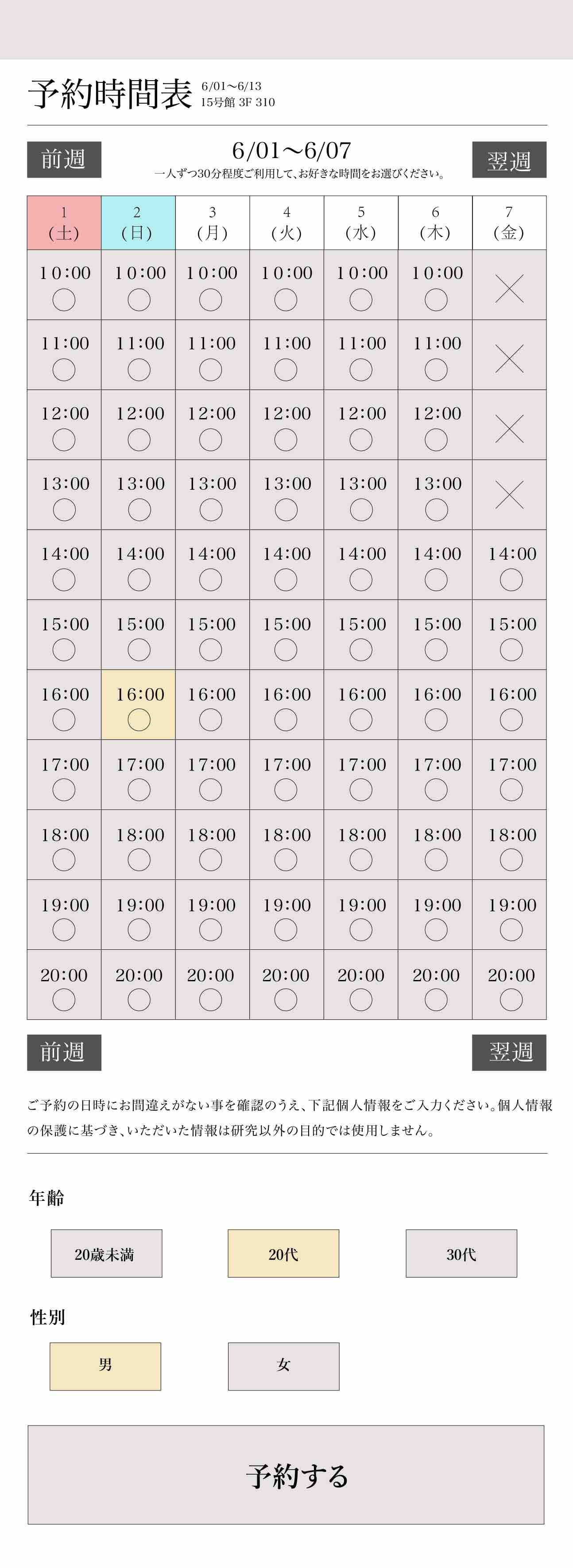 - テストの予約表の制作(一人ずつ行うので、予約することが必要がある)