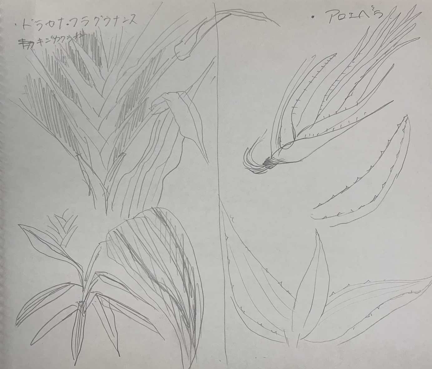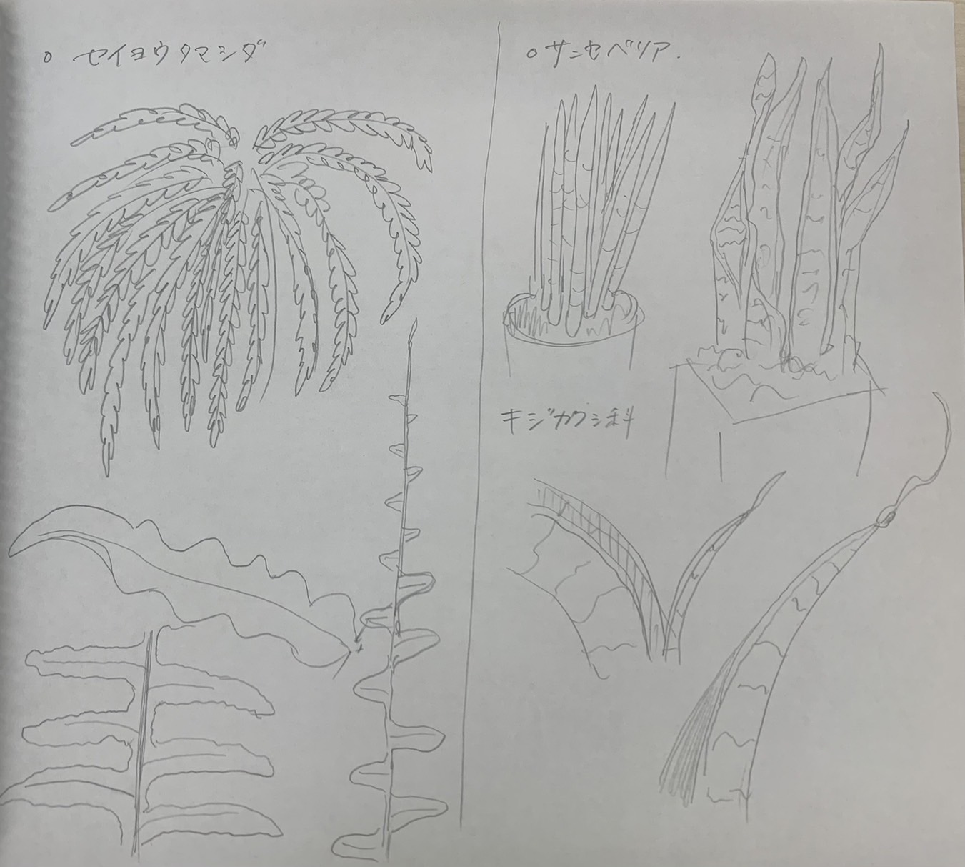 植物特徴表にある中の、育成しやすいもの・空気清浄効果をもつもの・緑が豊かなもの・風に揺れやすいもの・なども様々な環境や性質を持った中から10種類を選んだ。