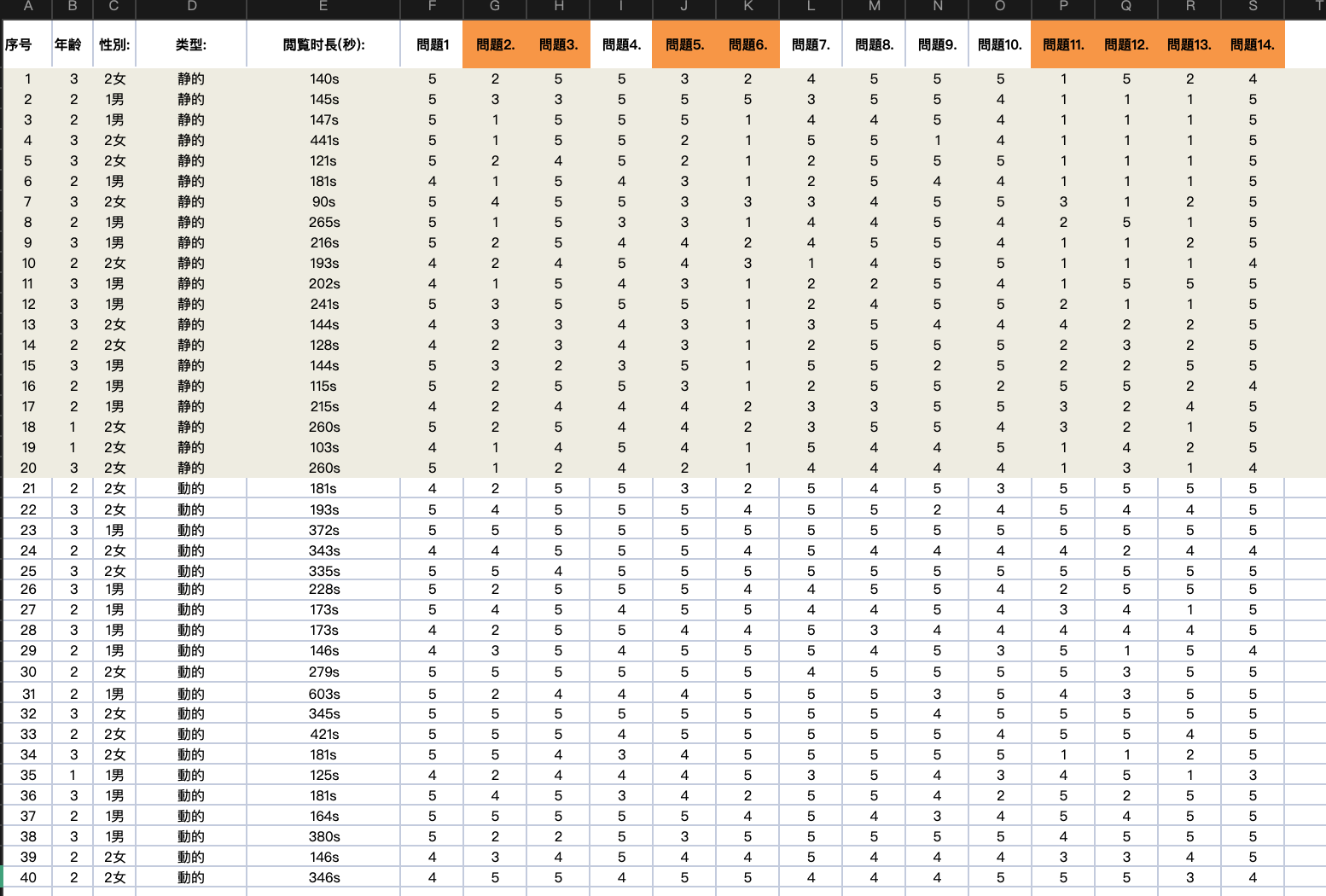 - 人数:40名(20男,20女)