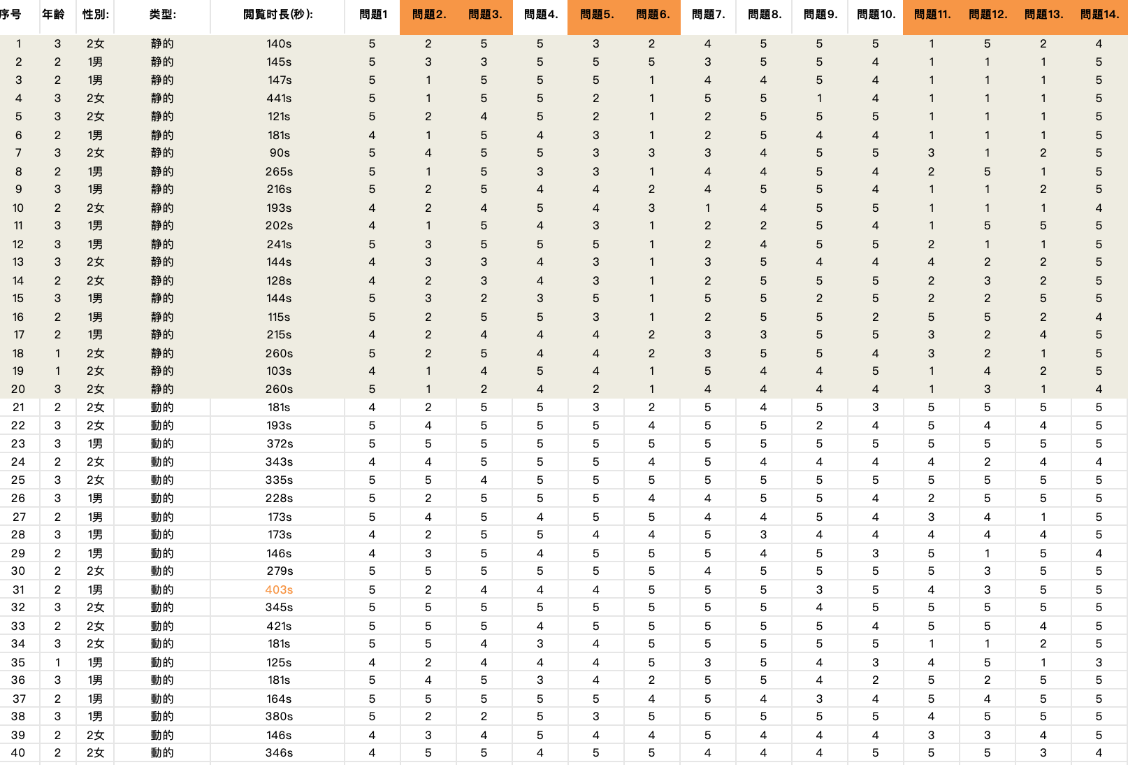 本実験では、静的Webページと動的Webページのユーザーの閲覧時間、アイトラッキング、マウスの軌跡をテストすることで比較実験を行い、ユーザーの満足度調査、ユーザーエラーの分析、ユーザー好みのテストなどを完成させる、そして、ユーザーの閲覧体験とニーズを理解した上で、Webページ制作の最適化と改善のための総合的なソリューションを提供する。この研究は、関連する開発者のための良い技術的な参考になれるほか、Webページのデザインの改善に示唆を与えることを期待している。