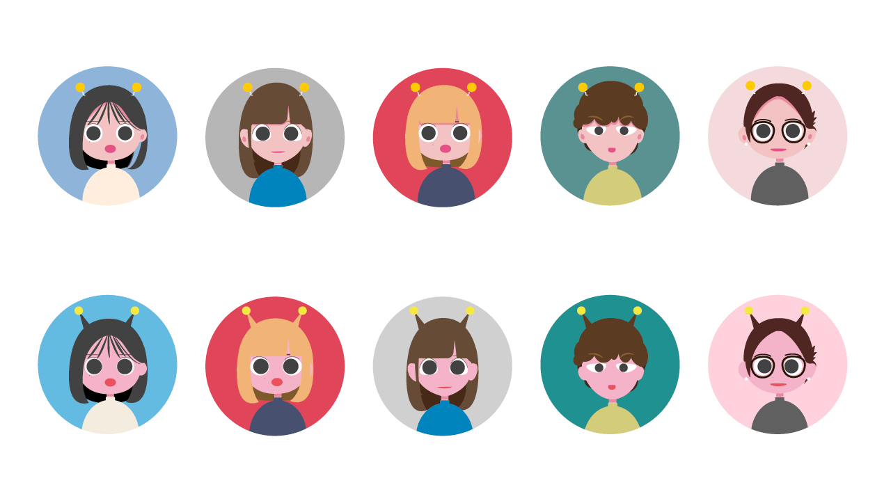 に例えることから、それぞれの花をモチーフにしたキャラクターを作成してみた。