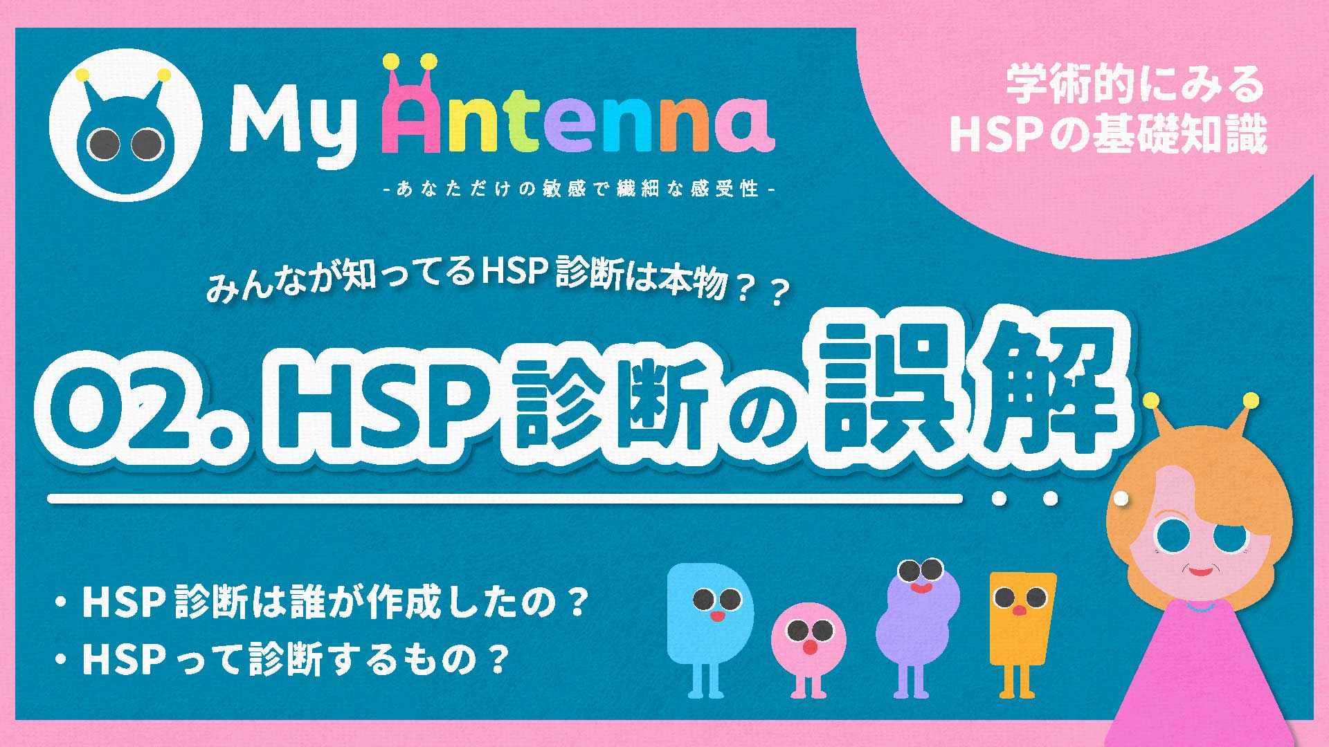 HSP(Highly Sensitive Person)は、Aron(1996)が提起した概念で、感覚処理感受性が高いことにより、周囲からの刺激に過敏に反応してしまう人のことを指す。HSPは感受性の高さから、光・⾳・⾹りなどの外的な刺激に敏感で、他人の気持ちに共感しやすい、些細なことで疲れやすい、物事を深く考えるといった特徴が挙げられ、近年の日本では「繊細さん」や「敏感さん」という愛称で知られるようになっている。