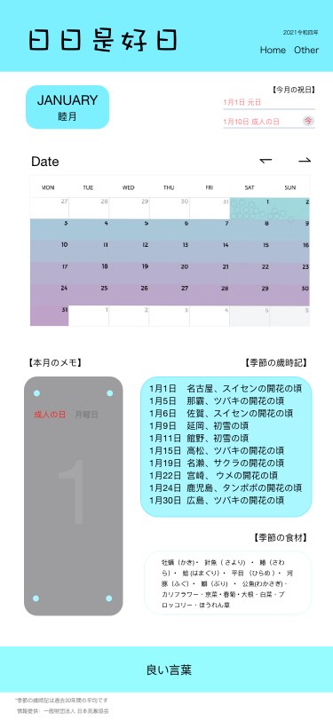 - カレンダーのwebサイトの制作