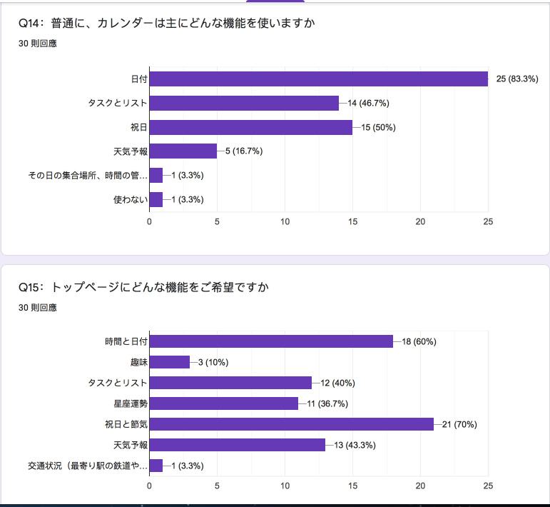 カレンダーの気になる点のアンケート調査(まだ、考えています)