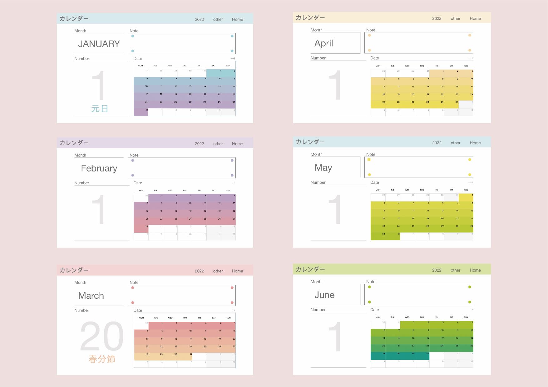 - 毎月(12個)のページデザイン。