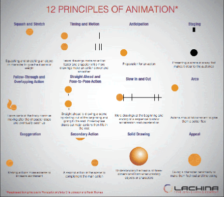 モーションデザインの12法則の起源は、ディズニーのアニメーターであるOllieJohnston ・FrankThomas による1981年の著書「《The Illusion of Life: Disney Animation》にまでさかのぼり、モーションデザインの原則を12のカテゴリーに分けて深く解説しています。 当時は2Dアニメーションから発展したルールでしたが、現在でも3Dアニメーションに応用できるものである。
